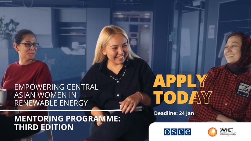 Women’s active participation and leadership are essential to achieving energy security and accelerating a just and inclusive energy transition. Yet, the energy sector remains one of the least gender-diverse industries, limiting innovation and growth. To address this imbalance and close the gender gap in the sector, the OSCE, in partnership with the Global Women’s Network for the Energy Transition (GWNET), is launching the third edition of the mentoring programme for Central Asian women in Renewable Energy.