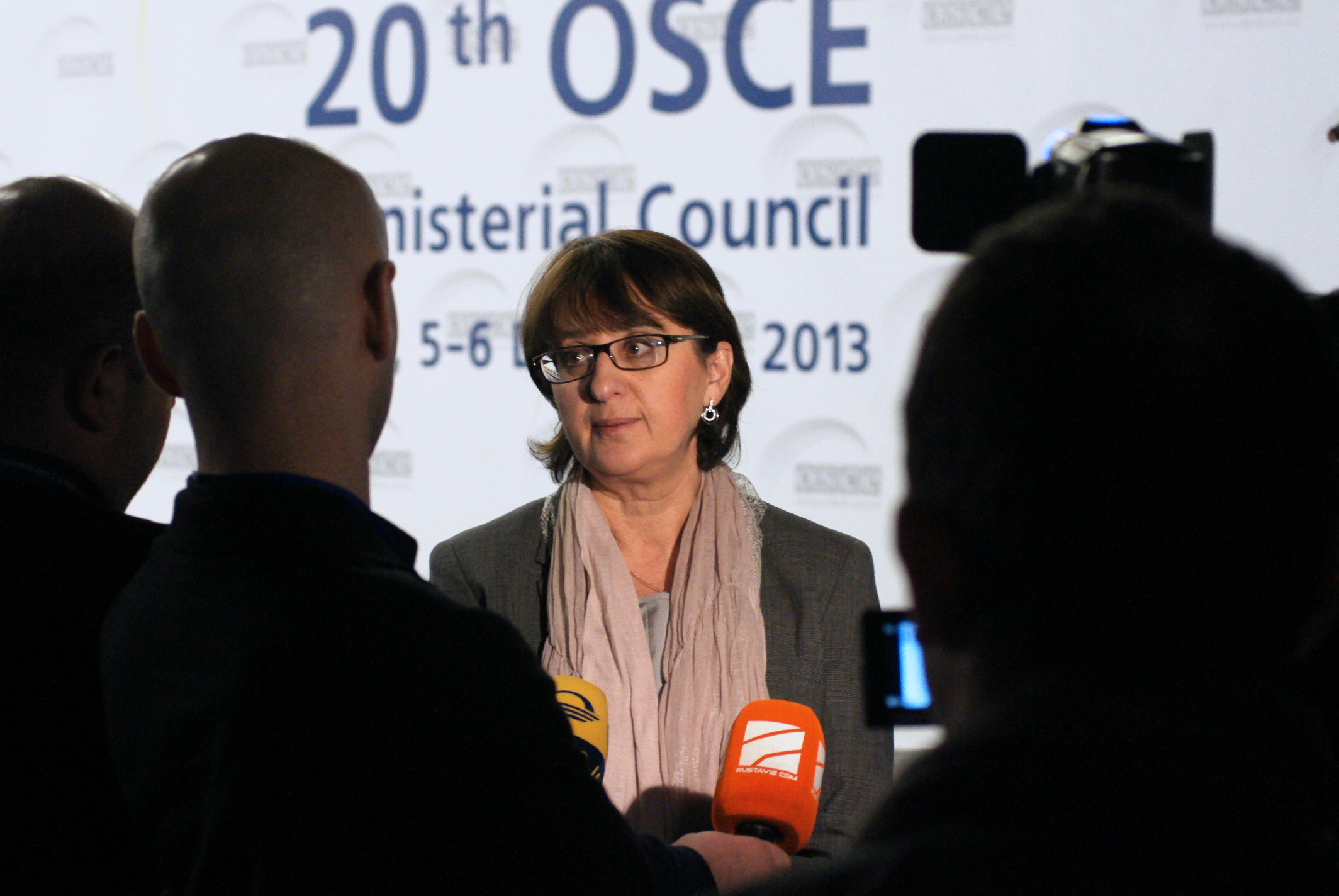 Foreign Minister of Georgia Maia Panjikidze giving an informal briefing to the media after her plenary speech at the OSCE Ministerial Council, Kyiv, 6 December 2013.
