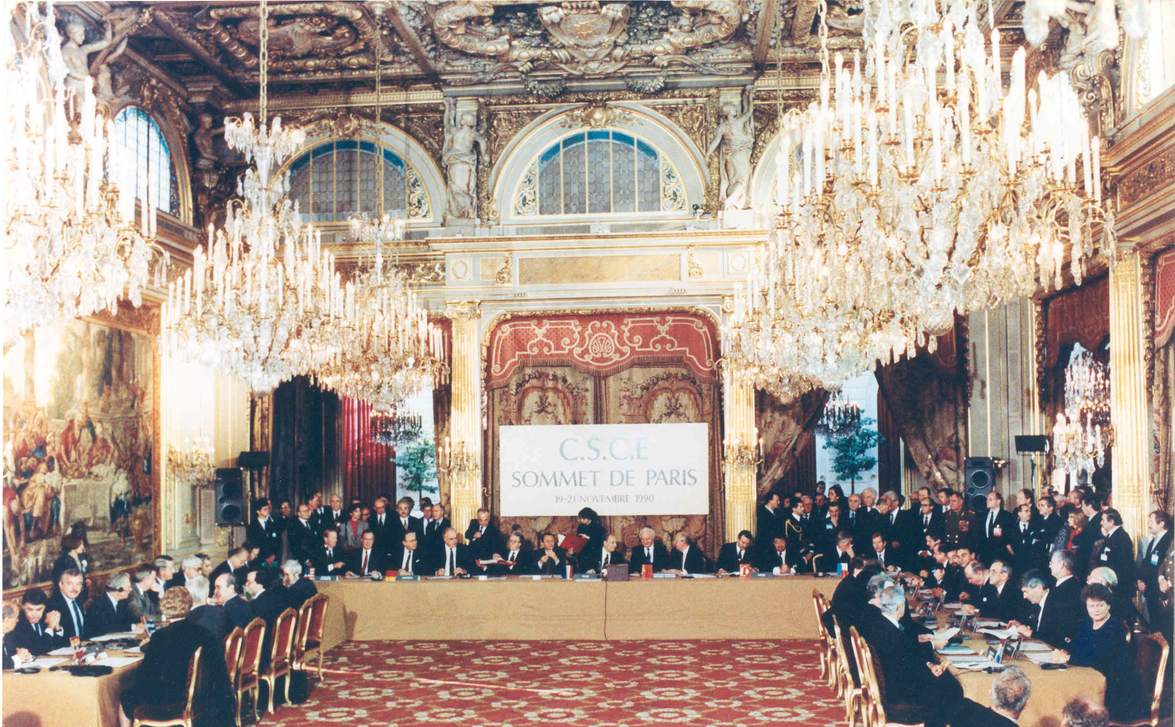 Meeting in the French capital on 19-21 November 1990, the CSCE Heads of State and Government signed the Charter of Paris, a historic document announcing a 'Europe whole and free'.