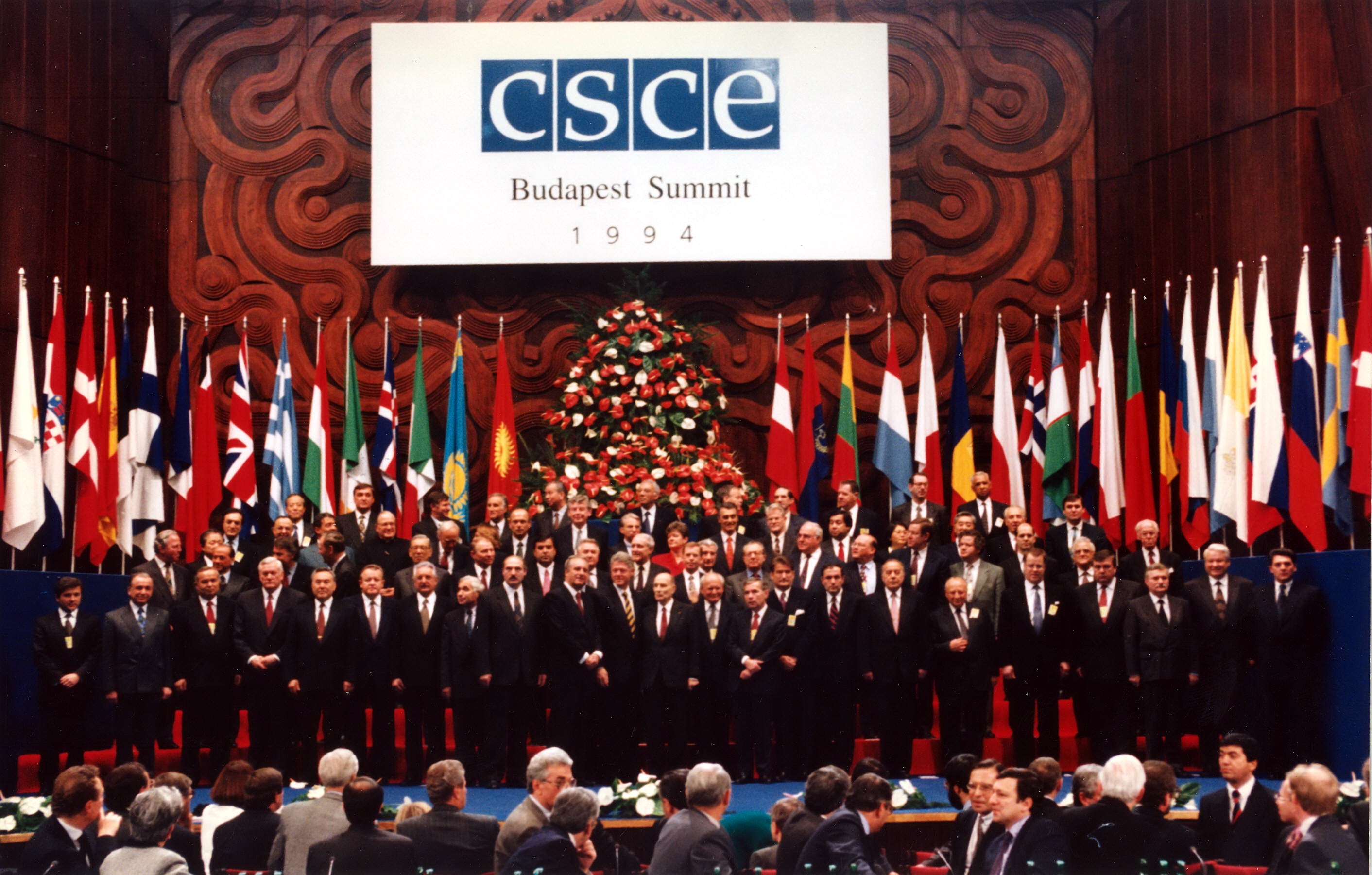 At the Budapest Summit 1994, the participating States decide to turn the CSCECSCE Conference on Security and Co-operation in Europe into a full-fledged organization, the Organization for Security and Co-operation in Europe. 5–6 December 1994.
