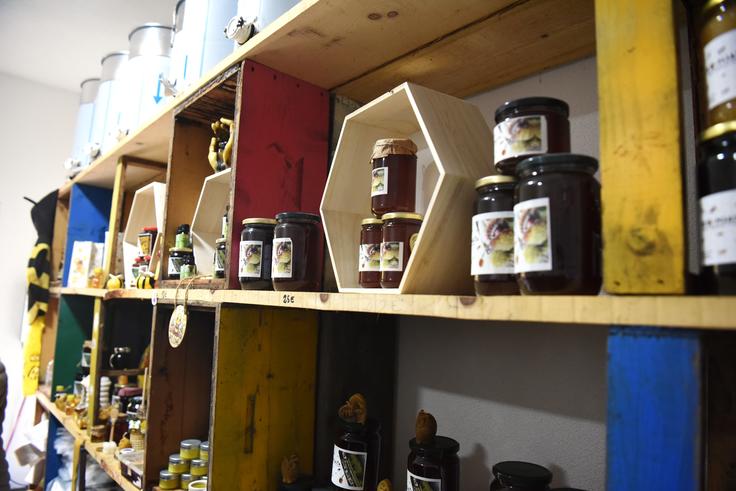 A variety of beekeeping products, including honey, beeswax, propolis, and other natural goods.