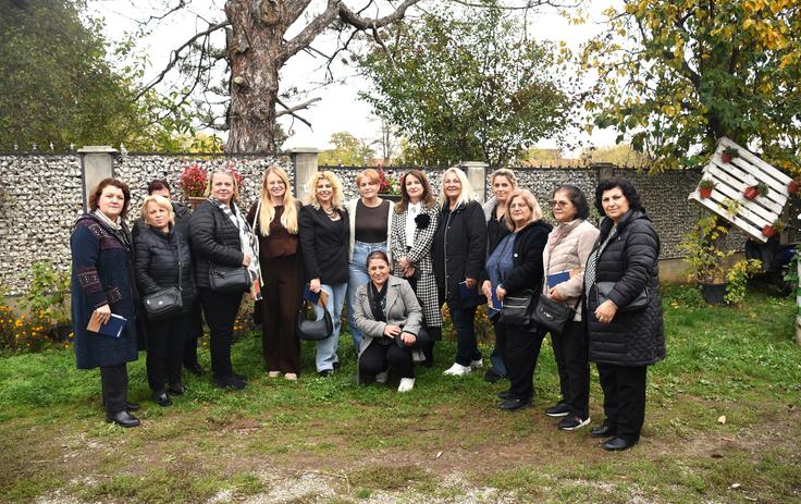 Local women farmers posing together at the end of their visit, with municipal and OSCE Mission in Kosovo representatives. 5 November 2025 (OSCE/Leurina Mehmeti)