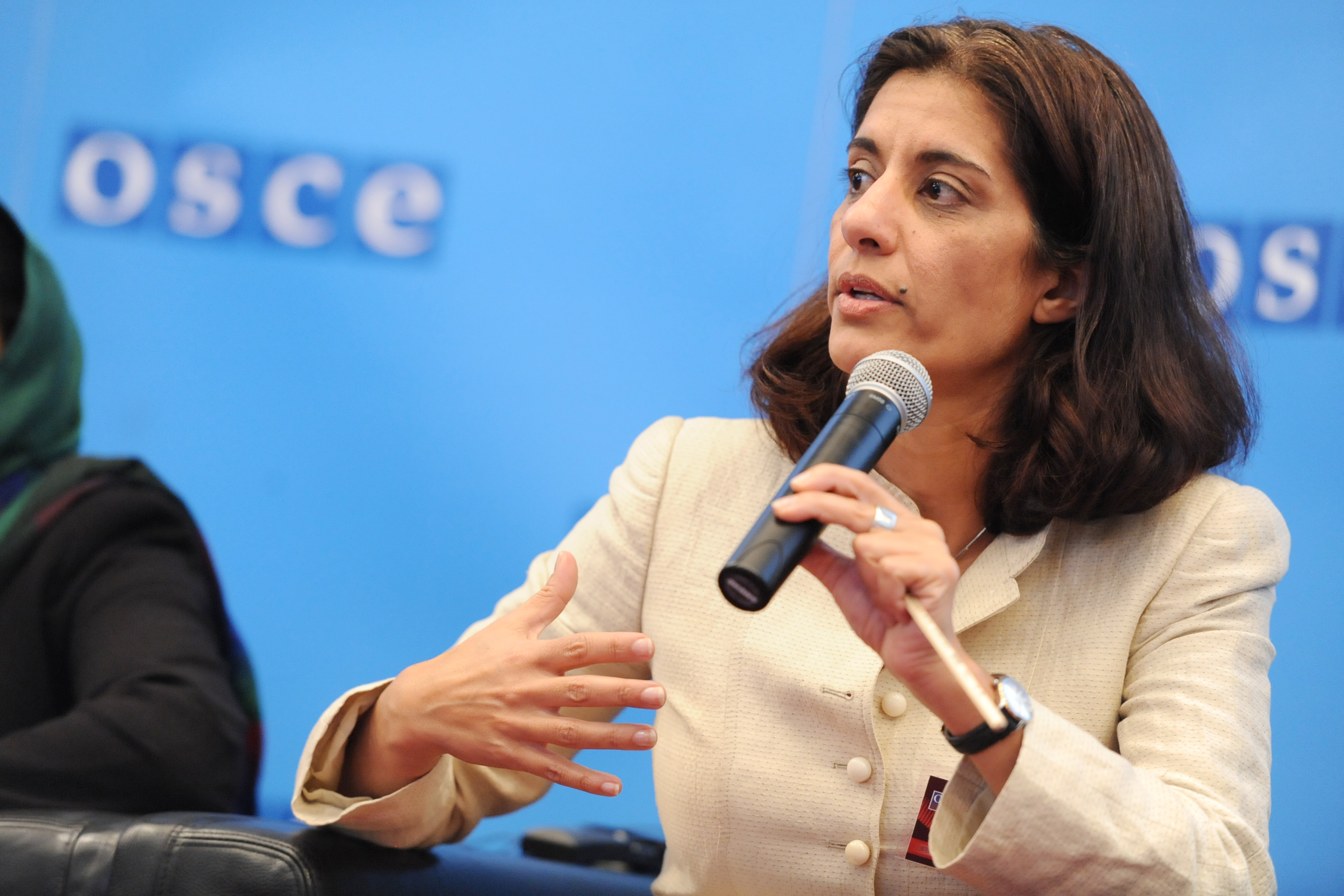 Sanam Anderlini, Co-founder of International Civil Society Action Network, moderating panel discussion at Security Days 2015 event, Vienna, 22 May 2015.