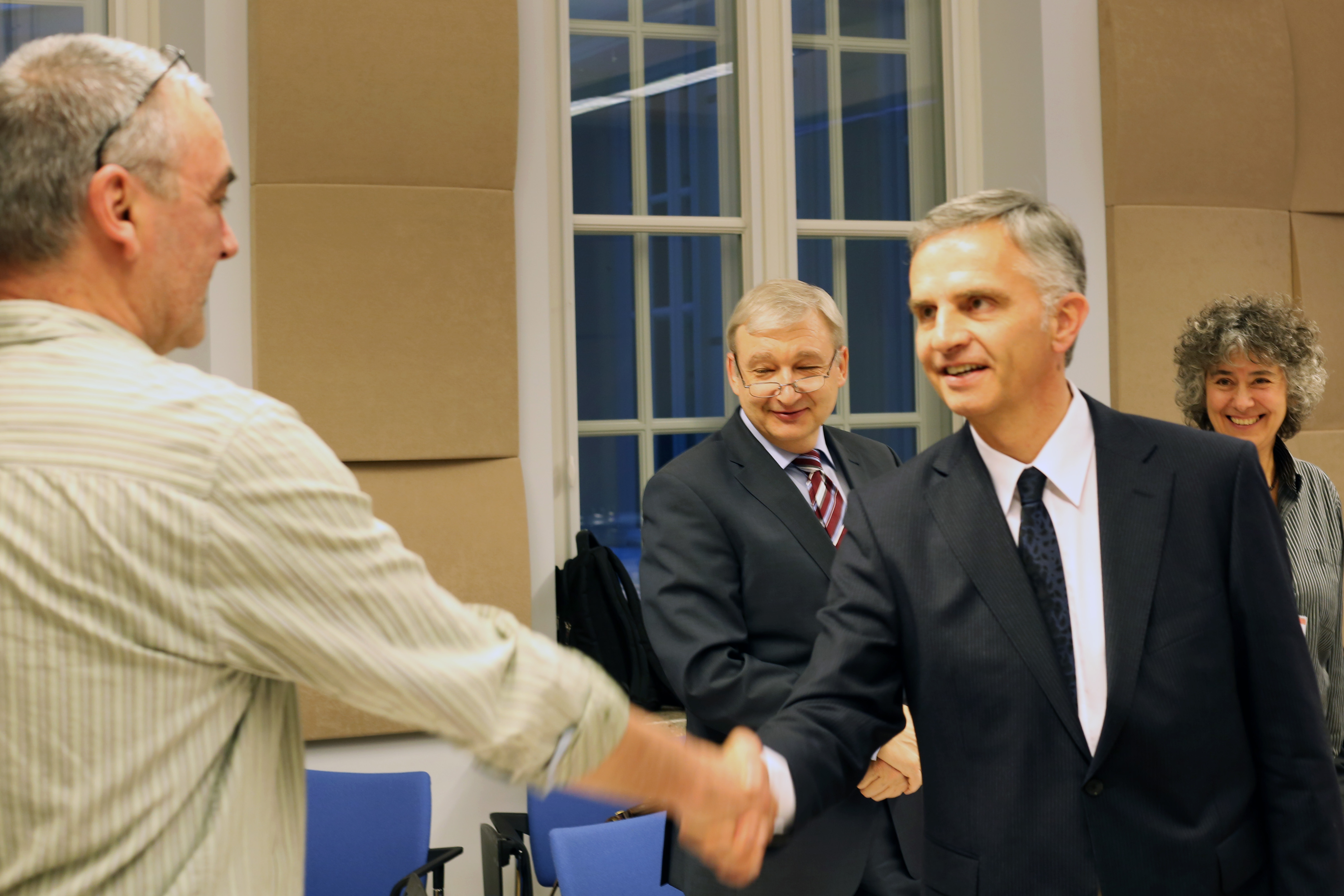 Didier Burkhalter, OSCE Chairperson-in-Office for 2014 and Head of the Swiss Federal Department of Foreign Affairs, meeting members of the ODIHR Freedom of Assembly Panel during his visit to ODIHR in Warsaw, 27 January 2014.