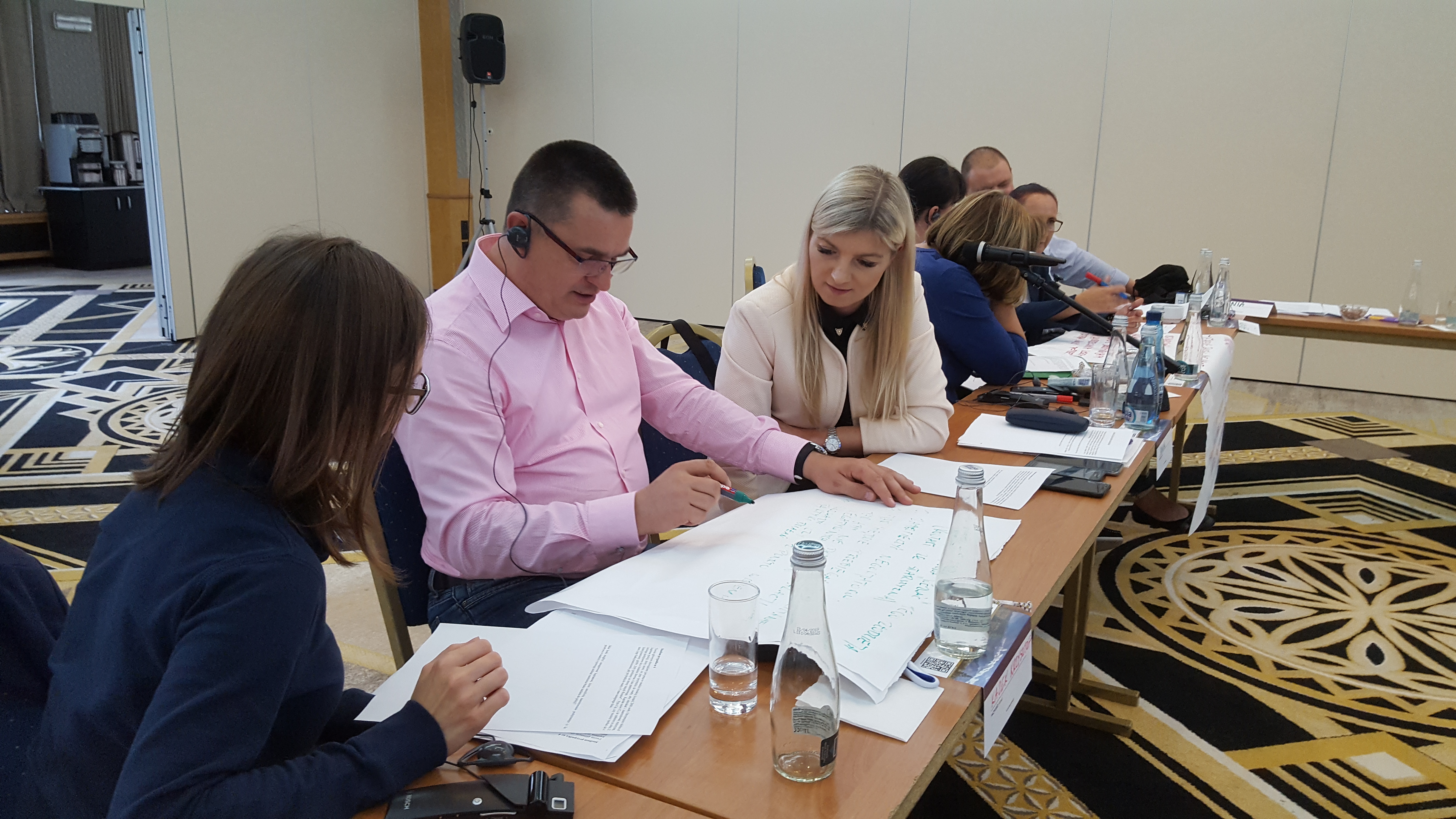 Polish police officers participate in a group exercise during a train-the-trainer course on effective and human rights-compliant policing in Roma communities, organized by the OSCE Office for Democratic Institutions and Human Rights (ODIHR) in co-operation with the Regional Police Headquarters in Krakow. 18 July 2018, Zakopane, Poland.