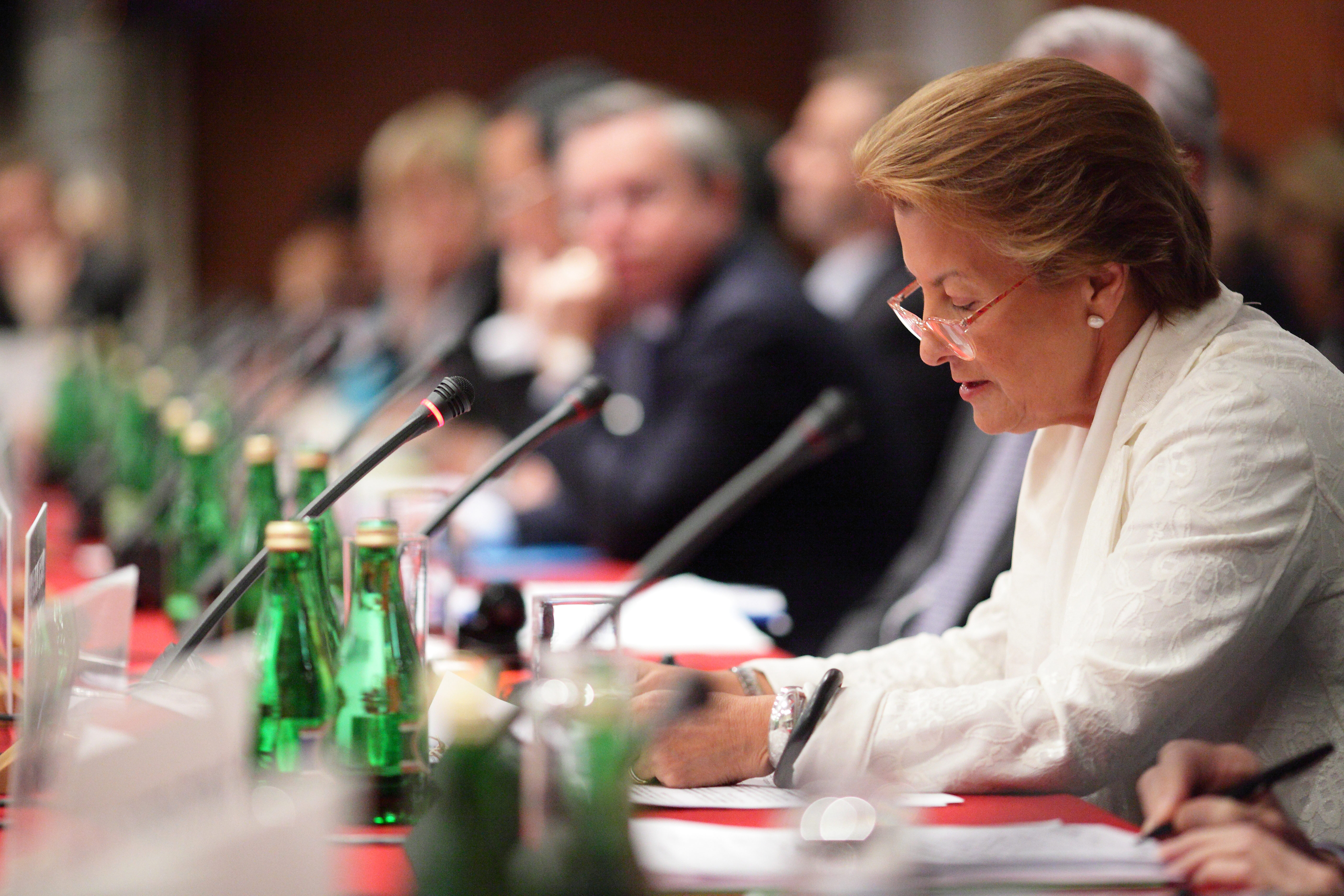 Ambassador Ana Martinho, Permanent Representative of Portugal to the OSCE and Chairperson of the Human Dimension Committee, makes a statement at the opening of the OSCE's Review Conference in Warsaw, 30 September 2010.