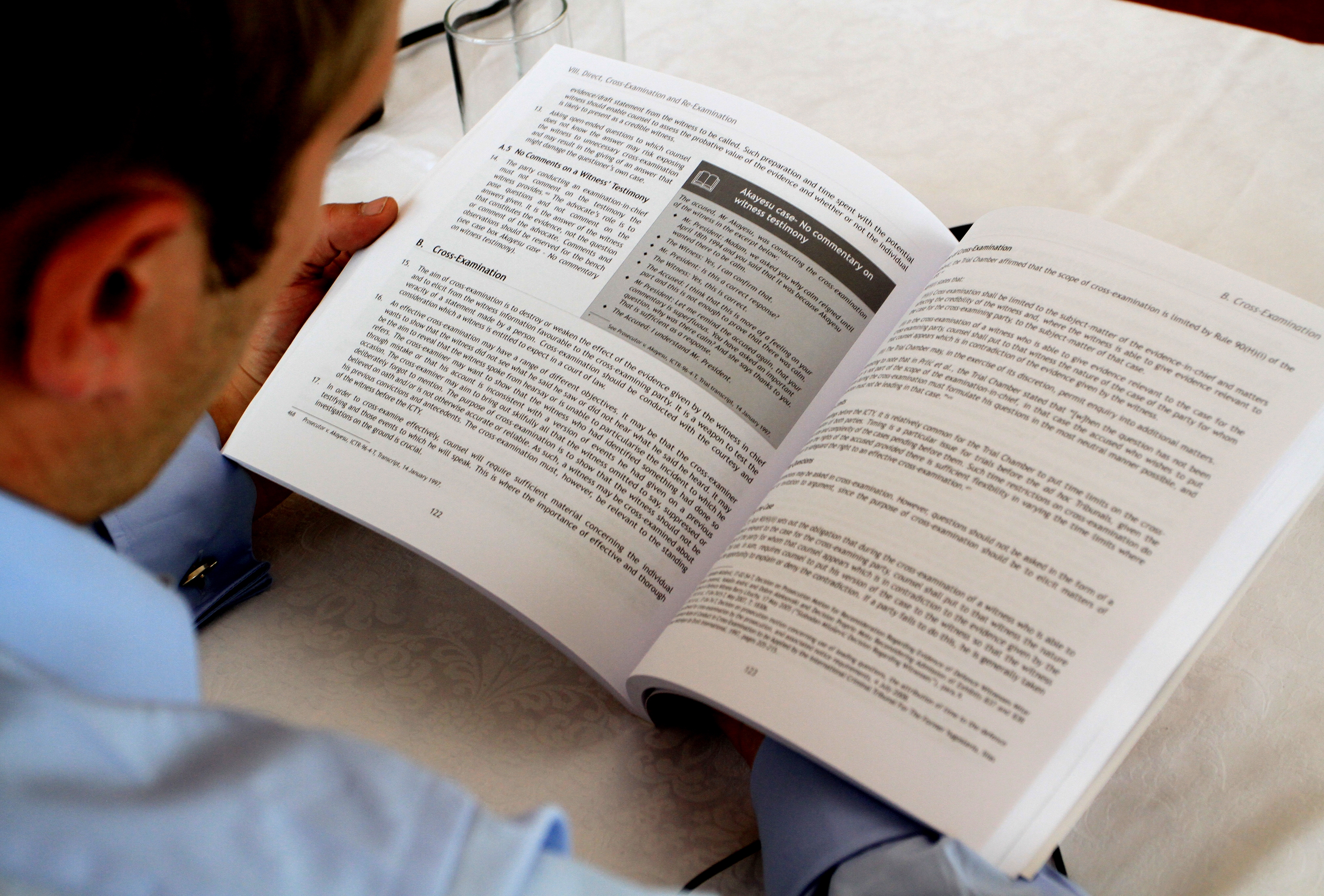 A participant at an advocacy-skills training for defence lawyers appearing in war crimes cases leafs through the Manual on International Criminal Defence in a session organized as part of the War Crimes Justice Project, Prishtinë/Priština, 19 October 2011.