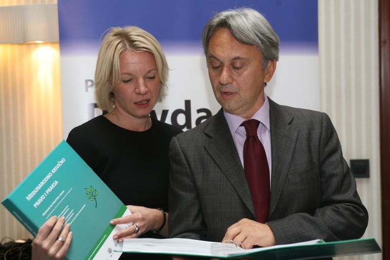 Romana Schweiger, WCJP Regional Coordinator, presents the war crimes training curriculum to Judge Siniša Važić, the Vice-President of the War Crimes Department of the Belgrade Appellate Court, 28 October 2011.