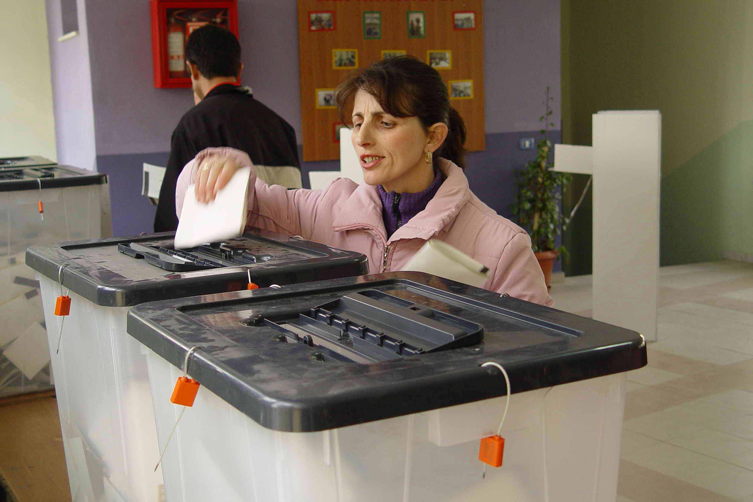 A woman casts her ballot during local elections in Albania, 18 February 2007.