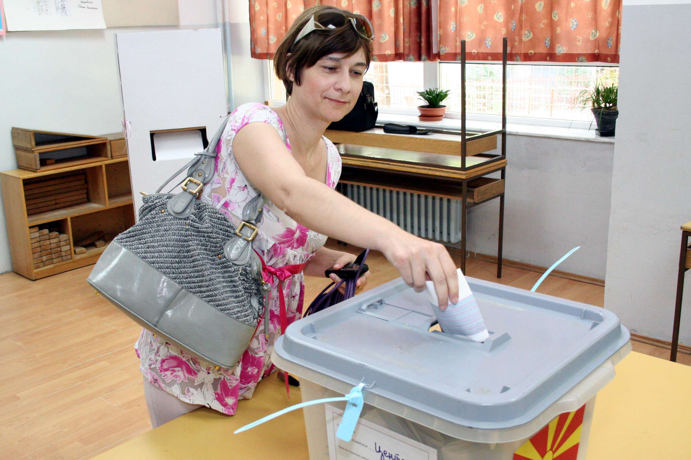 A voter casts her ballot in Skopje during the 1 June 2008 parliamentary elections in the former Yugoslav Republic of Macedonia.