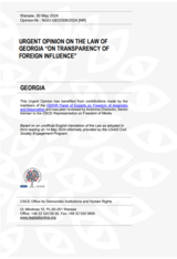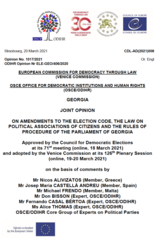 This Joint Urgent Opinion was prepared at the request of the Chairman of the Parliament of Georgia, addressed to the OSCE/ODIHR in March 2021.