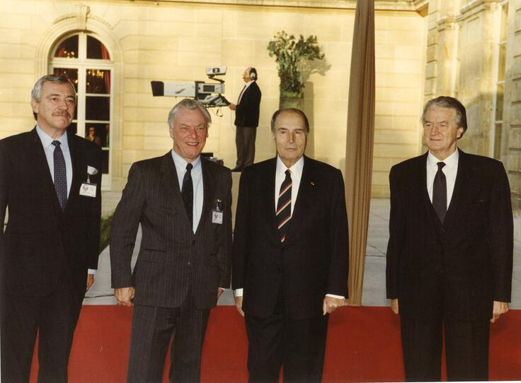 Monsieur Poul SCHLUTER, Premier Ministre du Royaume du Danemark, Monsieur Uffe ELLEMANN-JENSEN, Ministre des Affaires Etrangères, Monsieur François MITTERRAND et Monsieur Roland DUMAS