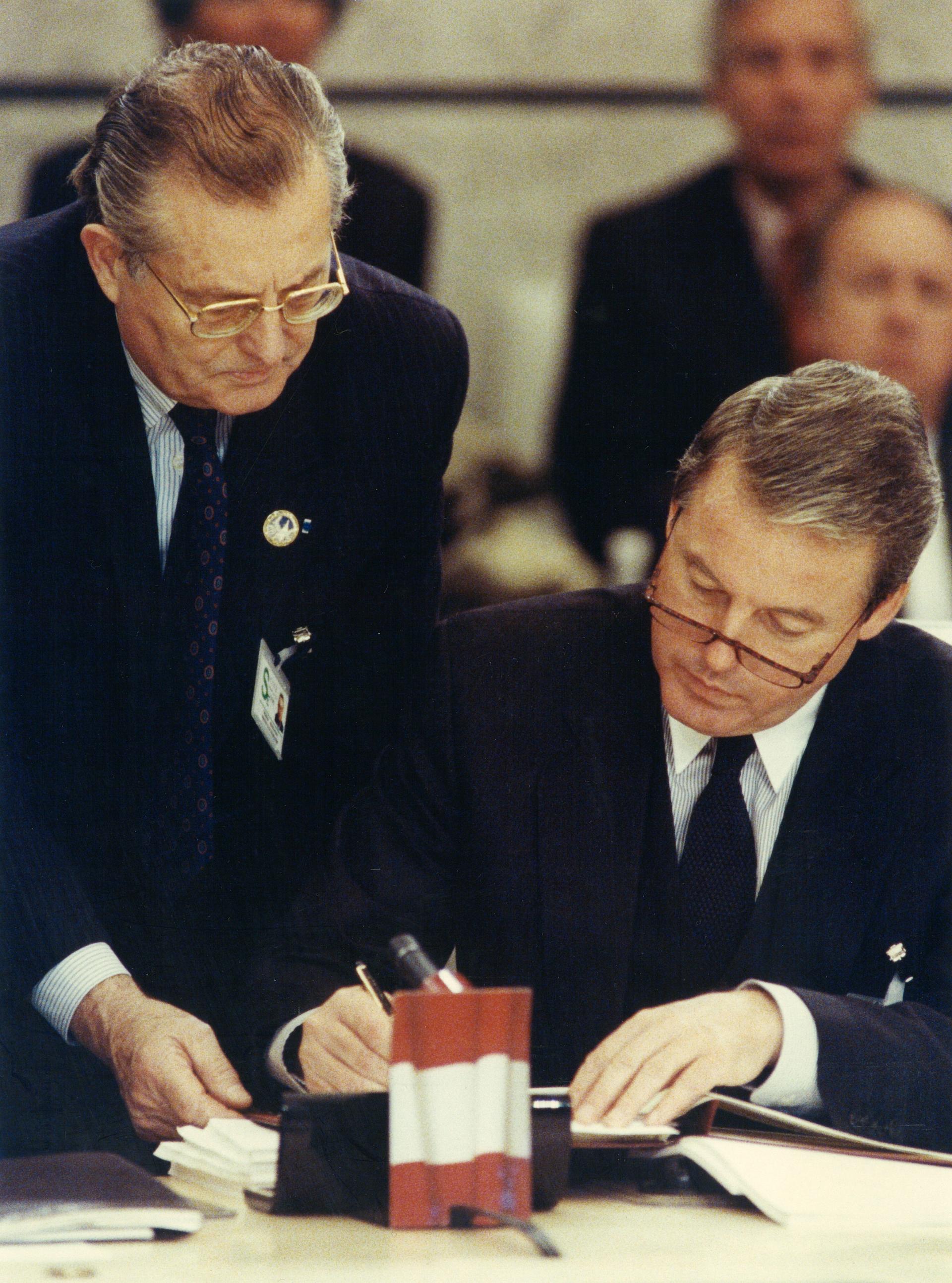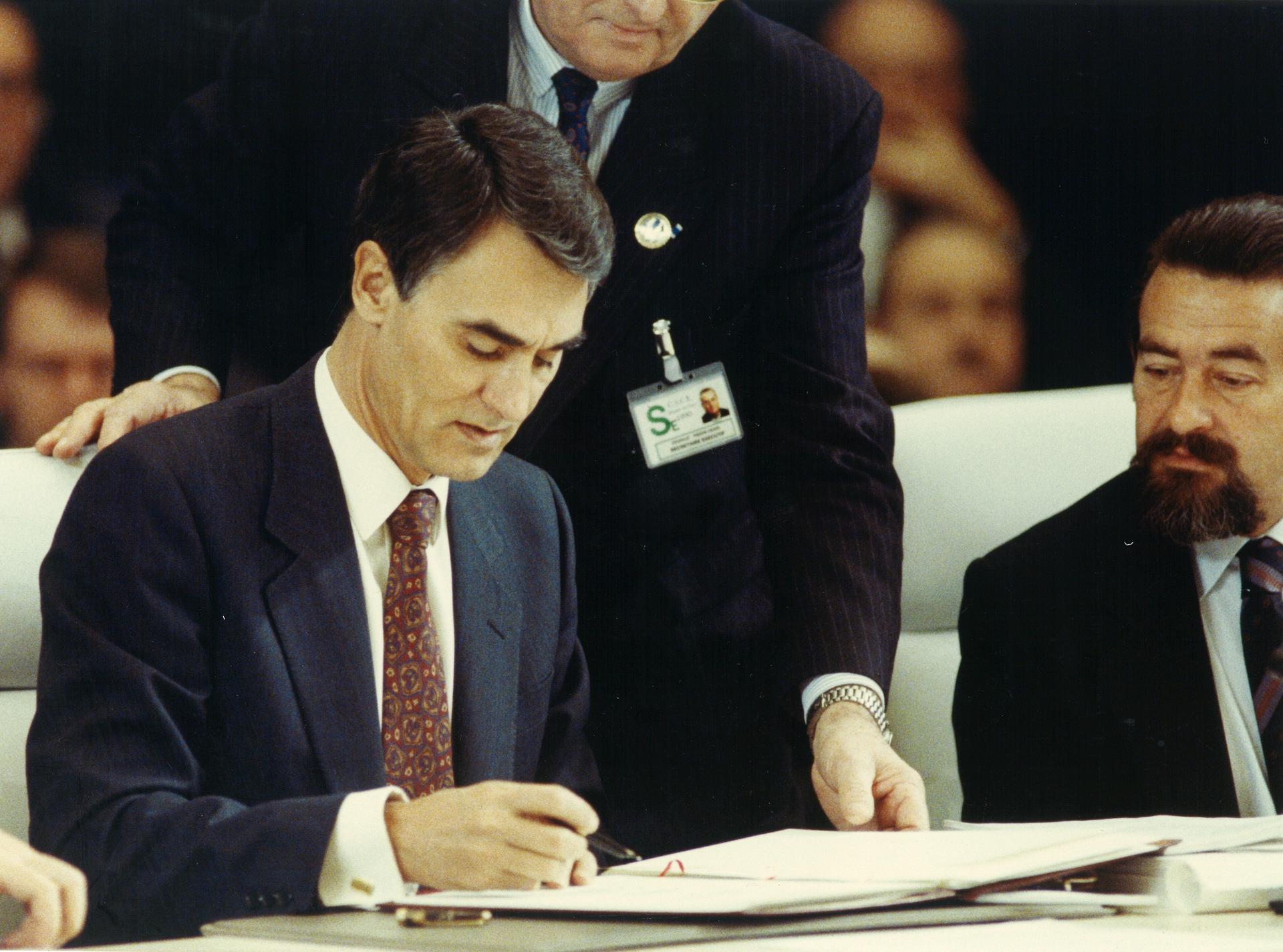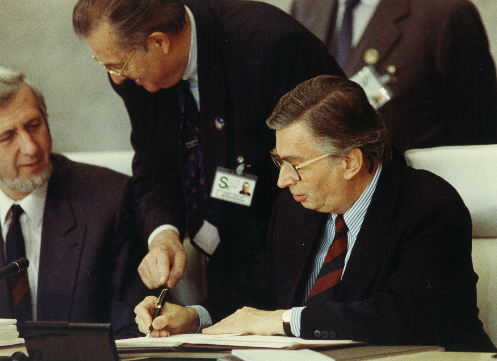Signing of the Paris Charter by representatives of states.