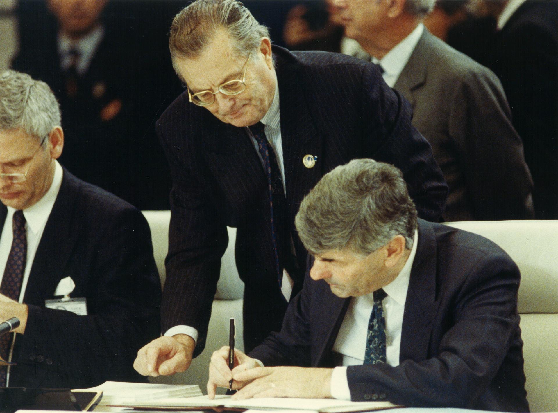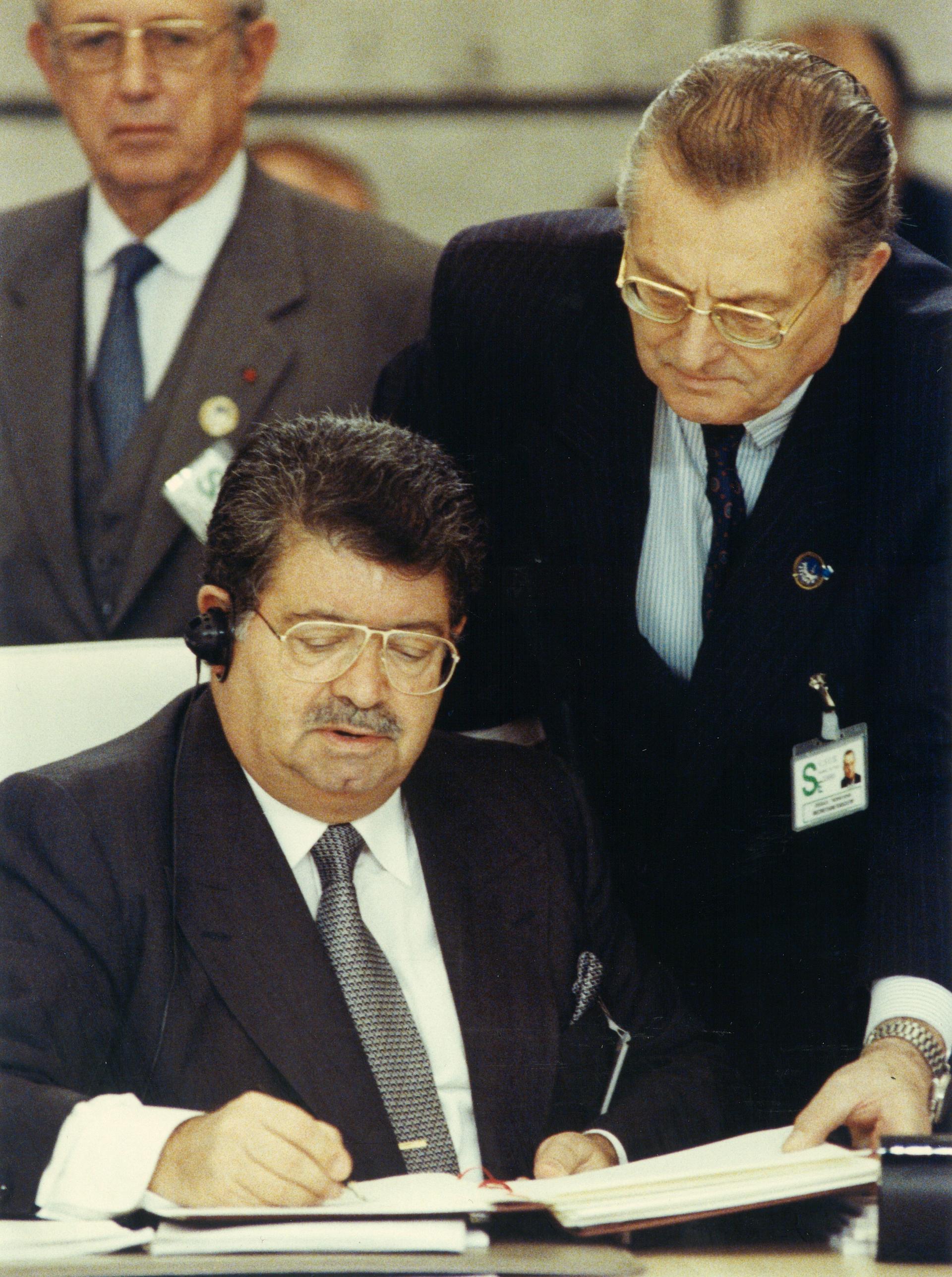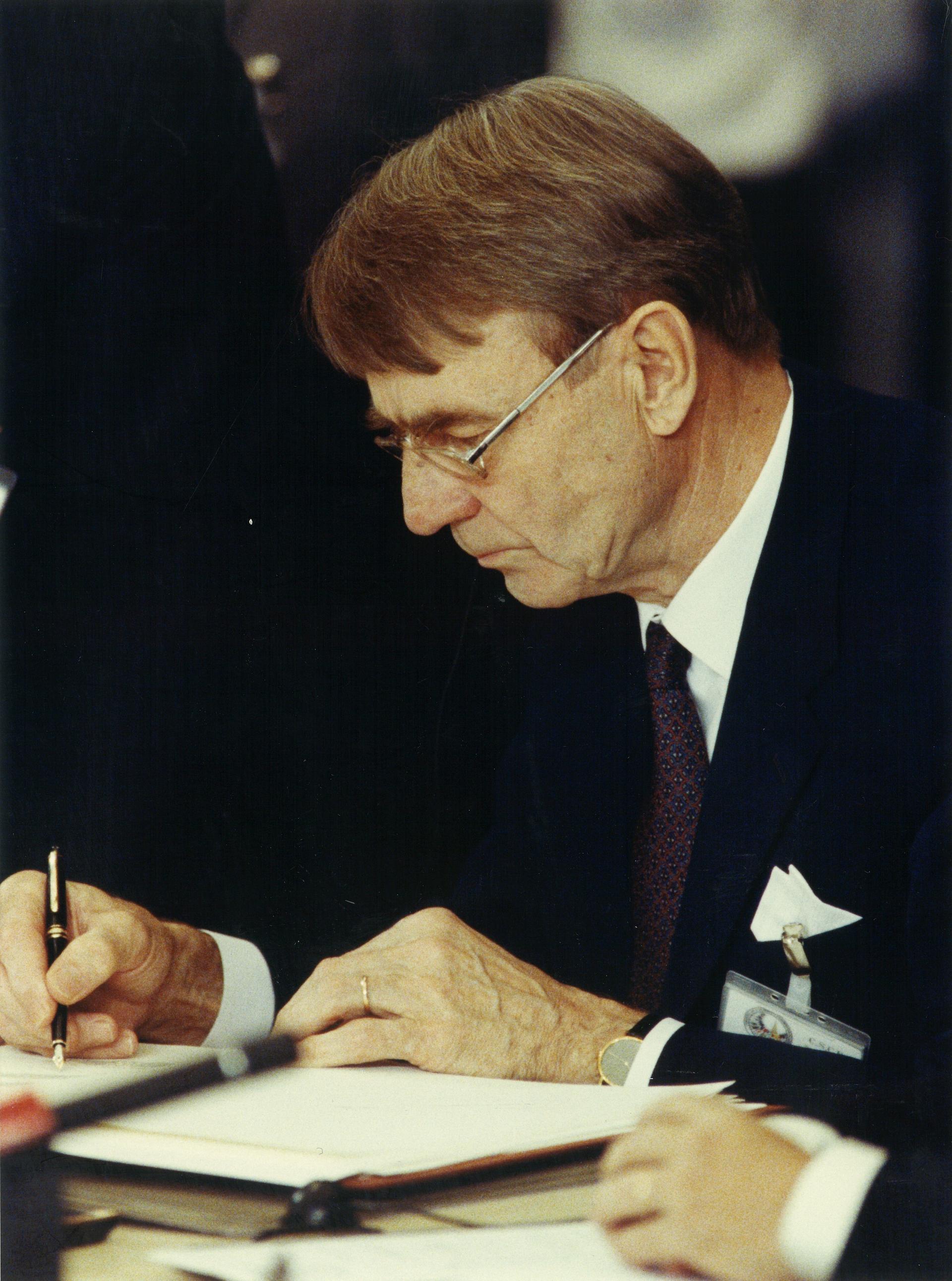 Signing of the Paris Charter by representatives of states.