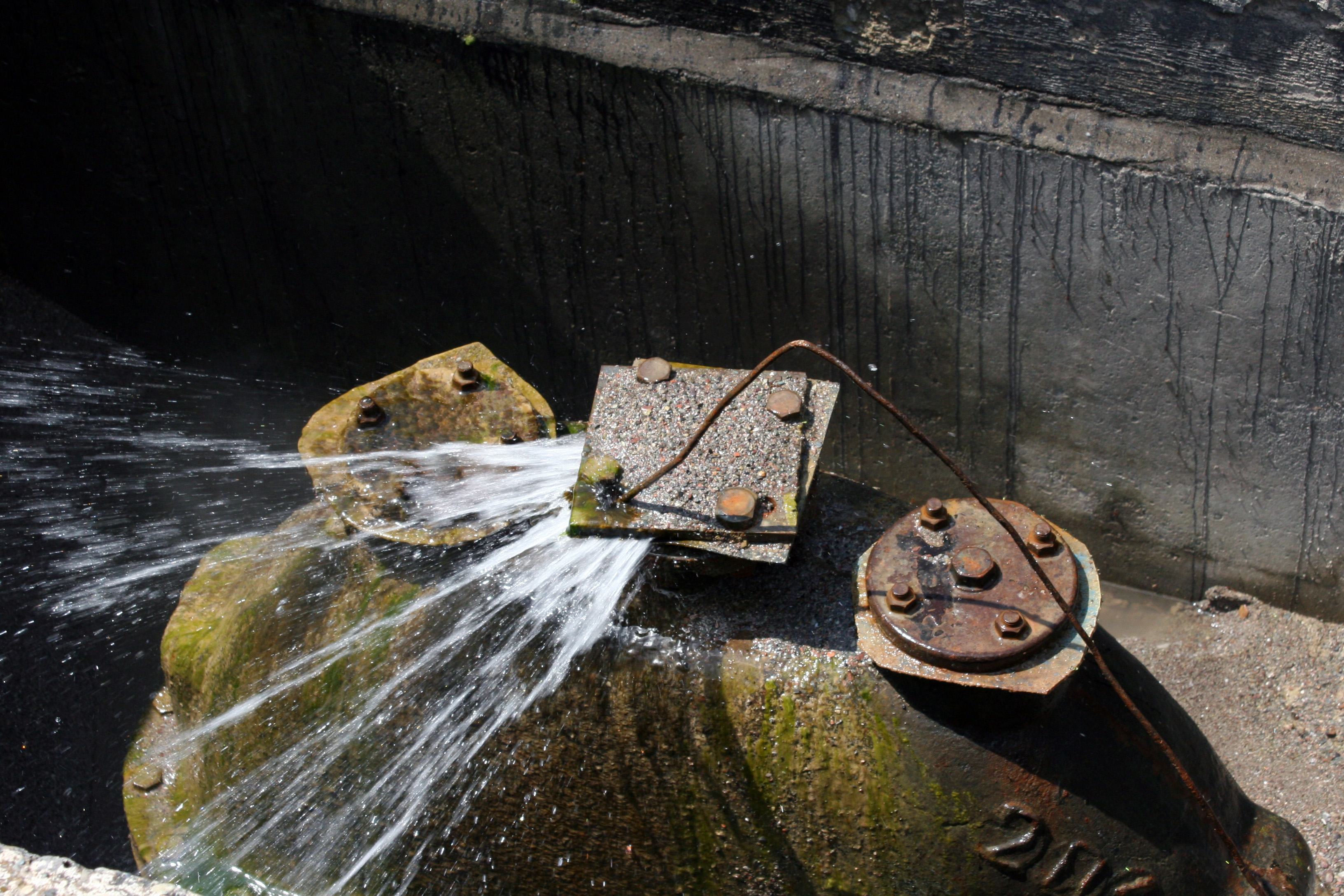 Часть плотины Зонкари приподнимается под напором воды, 12 июля 2011 г.