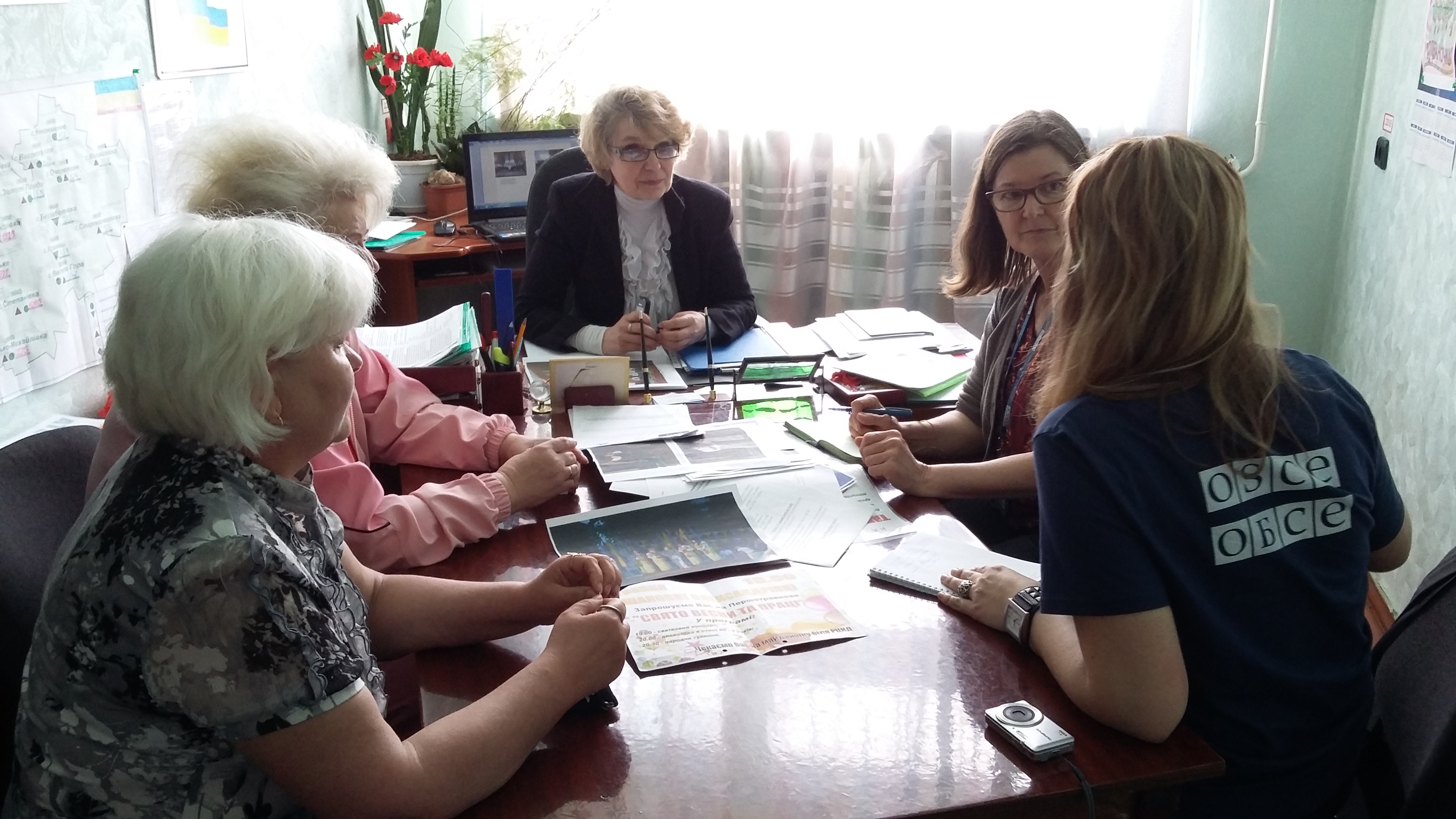 Сильвия Л. Шер Хан из Специальной мониторинговой миссии ОБСЕ в Украине на встрече с ассоциацией женщин в Александровке, Донецкая область, 30 апреля 2015.