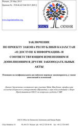 ЗАКЛЮЧЕНИЕ ПО ПРОЕКТУ ЗАКОНА РЕСПУБЛИКИ КАЗАХСТАН «О ДОСТУПЕ К ИНФОРМАЦИИ» И СООТВЕТСТВУЮЩИМ ИЗМЕНЕНИЯМ И ДОПОЛНЕНИЯМ В ДРУГИЕ ЗАКОНОДАТЕЛЬНЫЕ АКТЫ