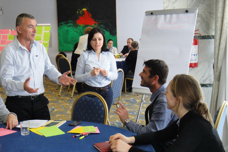 Participants during a regional roundtable meeting organized by the OSCE on the role of Aarhus Centres in transboundary water management, Tirana, 26 March 2015.