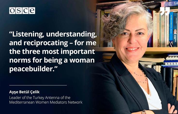 A. Betül Çelik is the founder and leader of the Turkey Antenna of the Mediterranean Women Mediators Network. A full professor at Sabanci University in Istanbul, she teaches and publishes on ethnic conflict, reconciliation, dialogue, forced migration, and gender and peacebuilding. She is a founding member of the university’s Gender and Women’s Studies Centre of Excellence, and Peace Foundation, a civil society organization working for societal peace. She has received “Official” (Ufficiale) rank of the Star of the Order of Italy (Ordine della Stella d’Italia) for her work in gender and mediation. She is also a dialogue facilitator and consultant for civil society organizations.