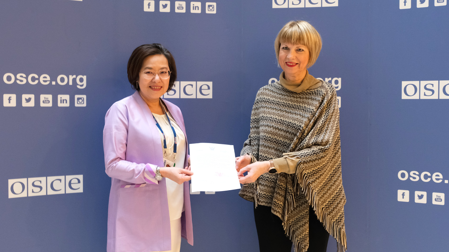 H.E. Vilawan Mangklatanakul, Ambassador and Permanent Representative of Thailand to the OSCE, with the OSCE Secretary General Helga Maria Schmid, Vienna, 23 January 2023.