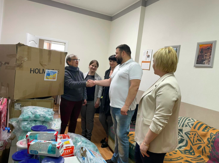 Svitlana Dubyna with her colleagues in ‘’VIS’’ humanitarian aid hub.