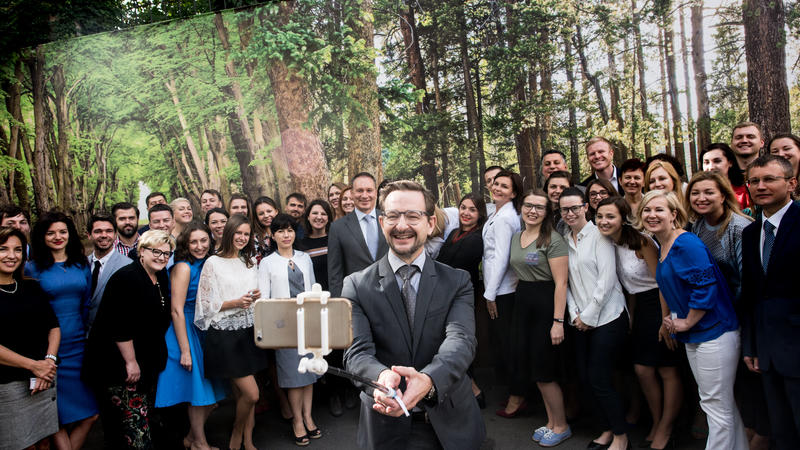 A staff member from the Special Monitoring Mission to Ukraine briefing the OSCE Secretary General, Thomas Greminger in Kyiv, 14 September 2017.