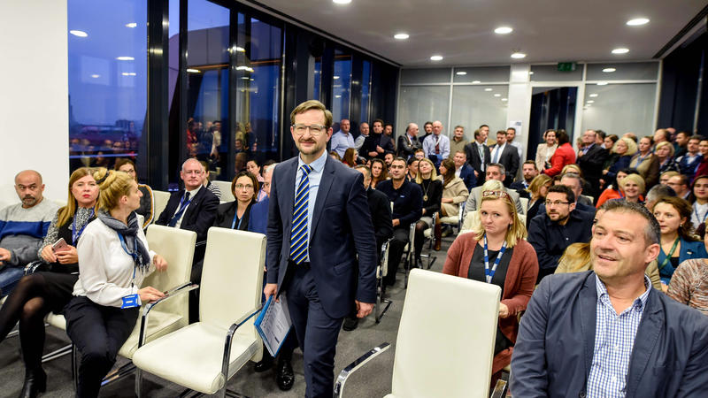 OSCE staff from the Mission to Skopje greeting OSCE Secretary General, Thomas Greminger, Skopje, 17 November 2017.