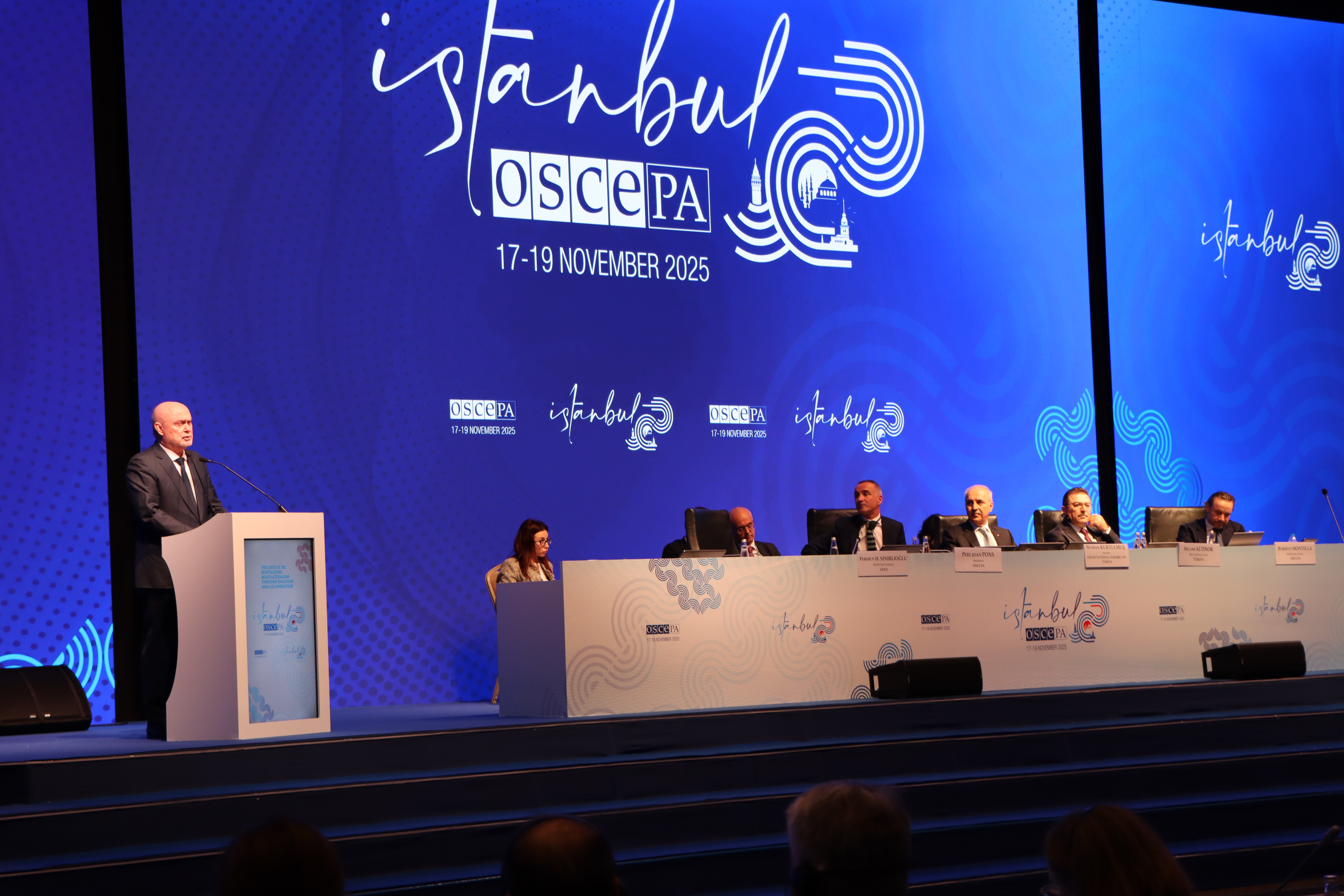 OSCE Secretary General Feridun H. Sinirlioğlu addresses the 23rd Autumn Meeting of the OSCE Parliamentary Assembly in Istanbul, 17 November 2025.