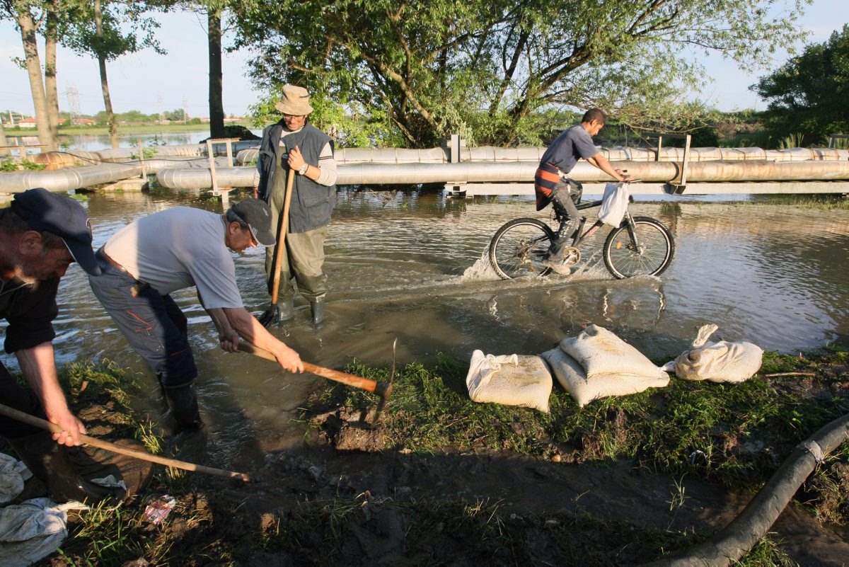 A group of volunteers from Kostolac clearing the canal near the river Mlava in order to enable free flow of water. Kostolac,19 May 2014.