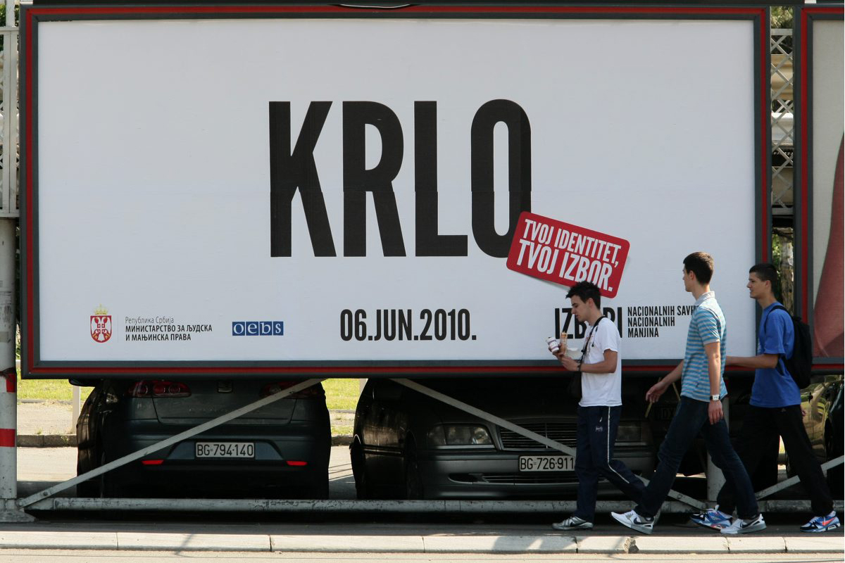 A billboard from an OSCE-supported campaign to encourage members of national minority communities in Serbia to vote in the 6 June 2010 national minority council elections. The billboard text says: Vote. Your identity. Your choice.