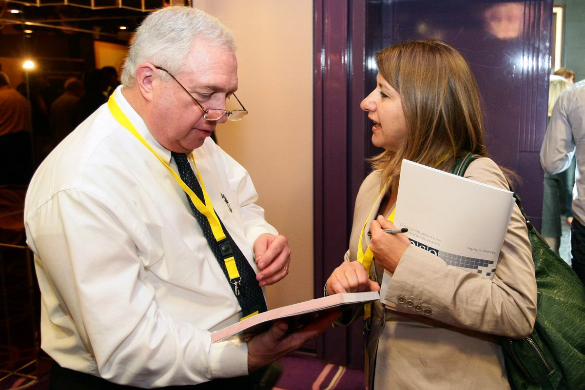 Dragana Solomon, Head of the OSCE Mission to Serbia's Media Department and Kent Collins, Chairman of the Broadcast News Department at the Missouri School of Journalism, at a regional media conference on investigative reporting, Belgrade, 5 May 2010.
