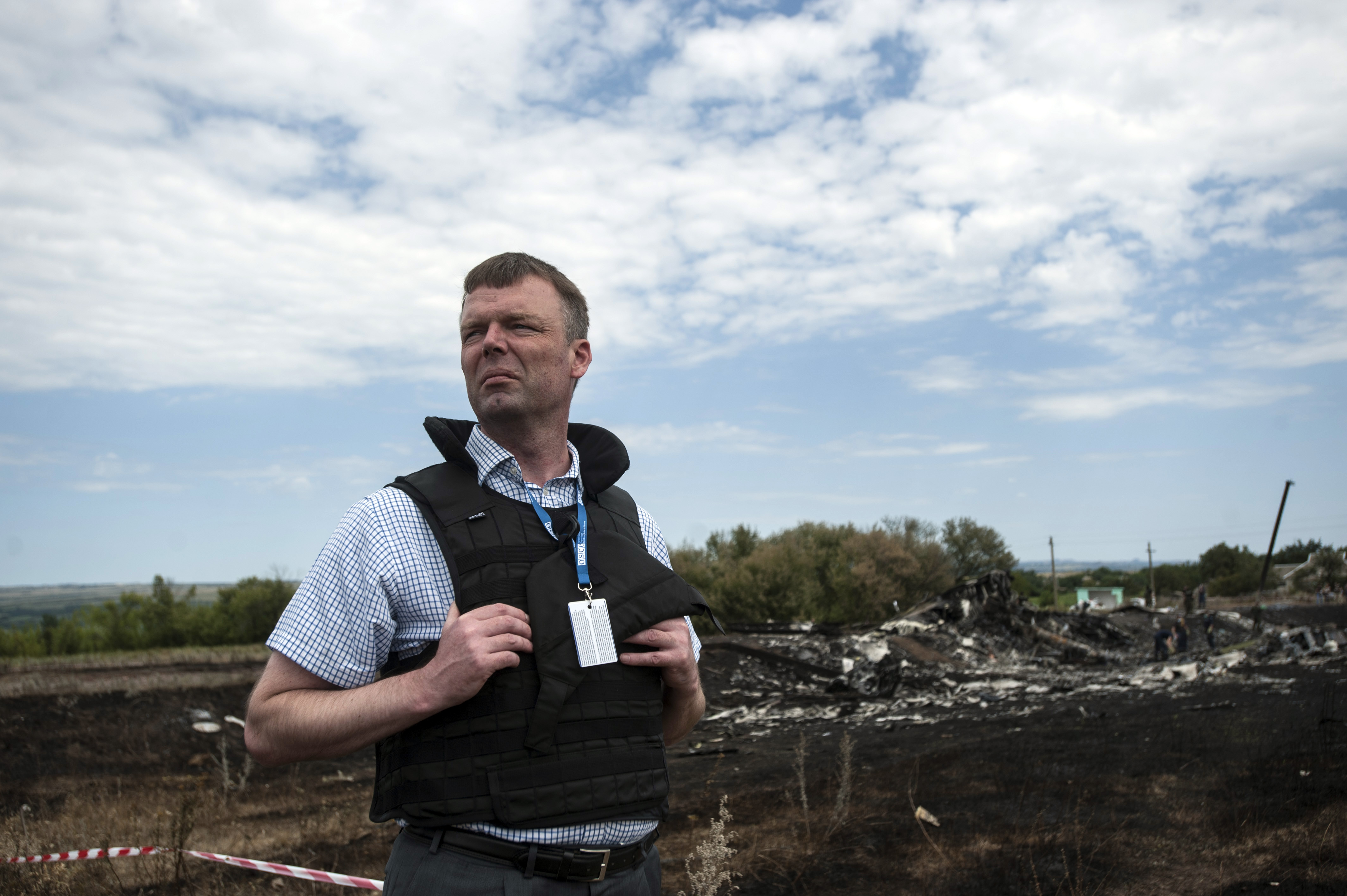 Олександр Хуг, заступник Голови місії, оглядає місце аварії.