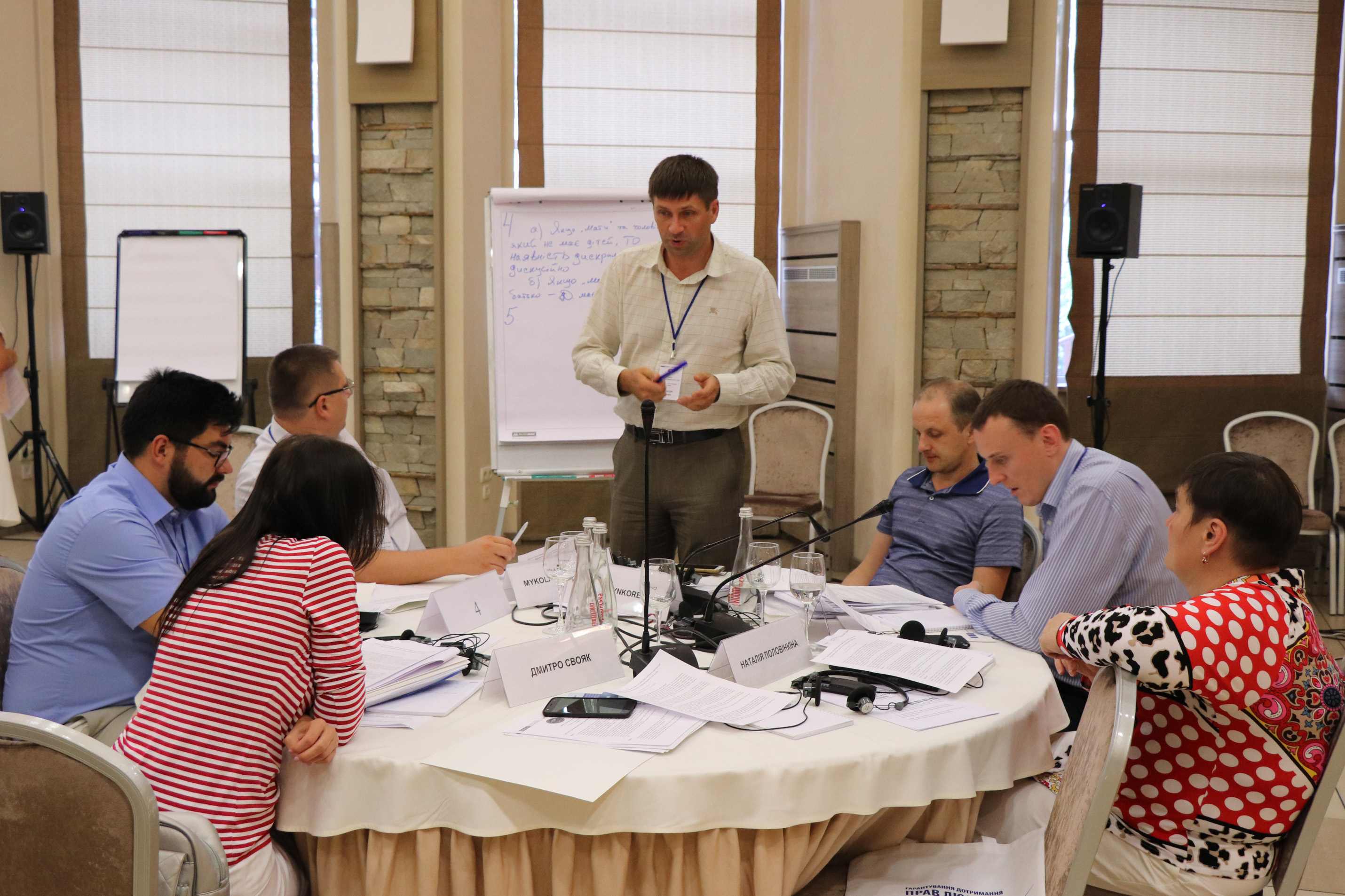 Українські судді вивчають ґендерні аспекти застосування Європейської конвенції з прав людини на тренінгу поблизу Києва, організованому Координатором проектів ОБСЄ, 31 липня 2018 року.
