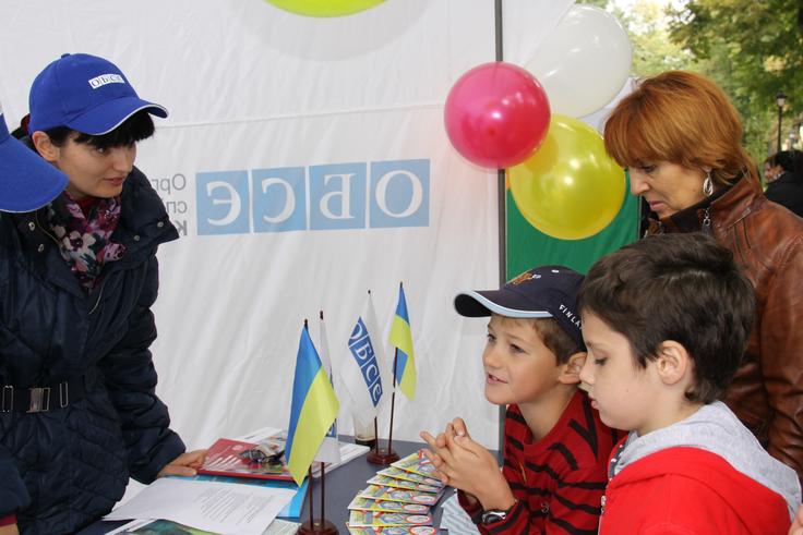 Тетяна Медун, співробітник проекту Координатора проектів ОБСЄ в Україні обговорює питання протидії домашньому насильству з учасниками вікторини у Києві, 22 вересня, 2012 р.