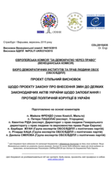 ПРОЕКТ СПІЛЬНИЙ ВИСНОВОК ЩОДО ПРОЕКТУ ЗАКОНУ ПРО ВНЕСЕННЯ ЗМІН ДО ДЕЯКИХ ЗАКОНОДАВЧИХ АКТІВ УКРАЇНИ ЩОДО ЗАПОБІГАННЯ І ПРОТИДІЇ ПОЛІТИЧНІЙ КОРУПЦІЇ В УКРАЇНІ