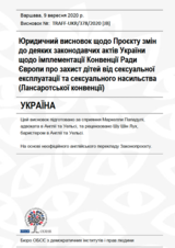 Юридичний висновок щодо Проєкту змін до деяких законодавчих актів України щодо імплементації Конвенції Ради Європи про захист дітей від сексуальної експлуатації та сексуального насильства (Лансаротської конвенції)