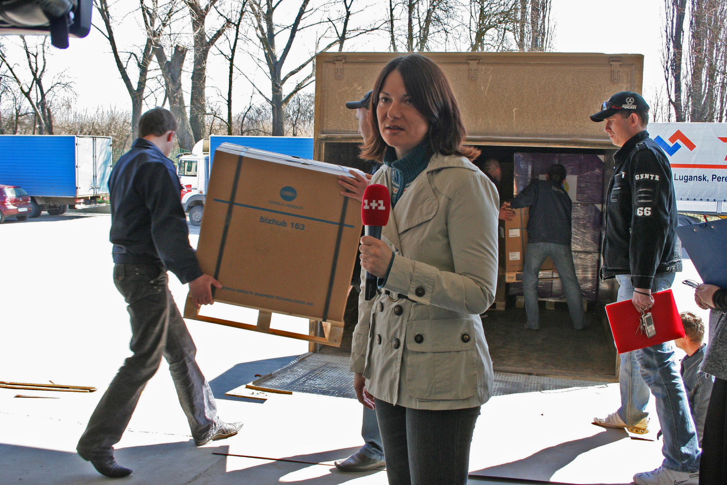 A journalist from TV channel 1+1 reports on the handover of IT equipment provided by the OSCE Project Co-ordinator in Ukraine to support the establishment of a State Voter Register, Kyiv, 7 April 2009.