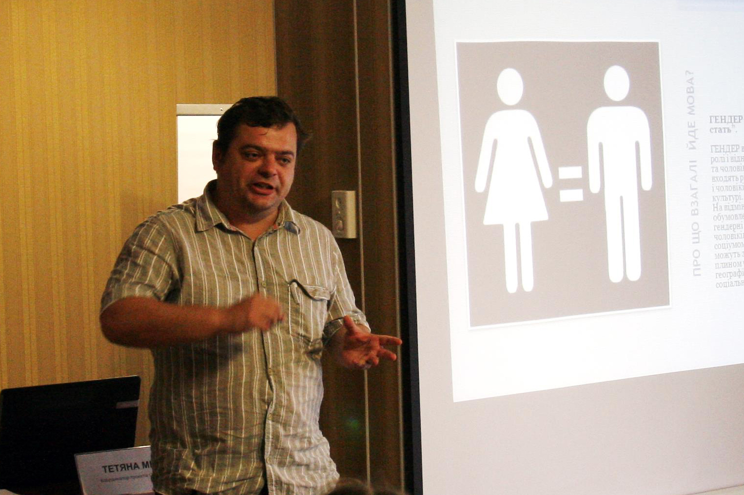 Media trainer Serhiy Shturhetsky explains specifics of gender-sensitive journalism to media professionals at a training course organised by the OSCE Project Co-ordinator in Ukraine, Odesa, 4 September 2014.