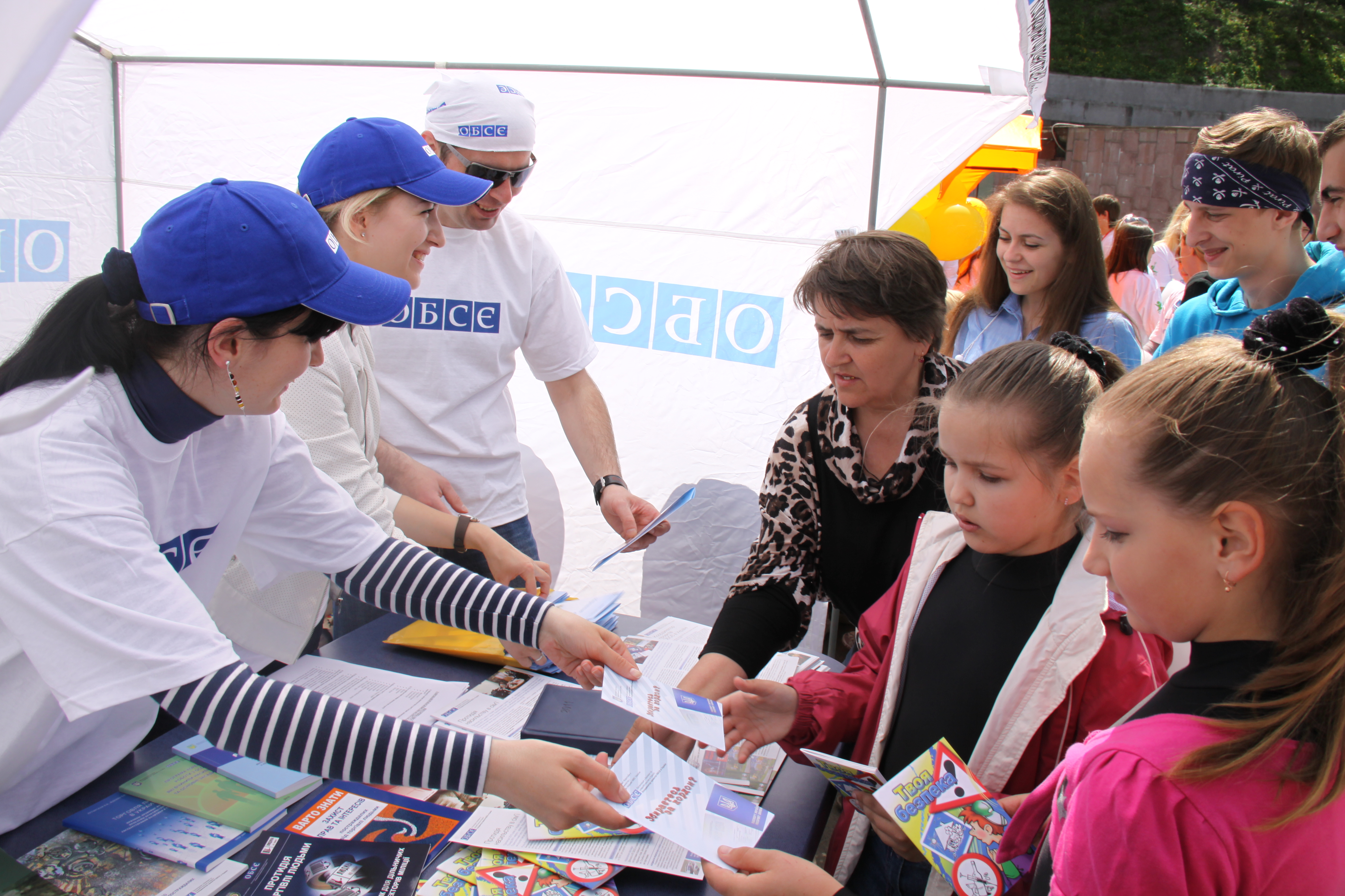 Staff of OSCE Project Co-ordinator in Ukraine works with youth to raise their awareness of human rights, to inform about threats of trafficking in human beings and to build zero tolerance to domestic violence, Kyiv, 15 September 2010.